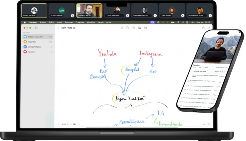 As mentorias acontecem a cada 15 dias, em encontros ao vivo comigo e com os outros empreendedores da Comunidade.